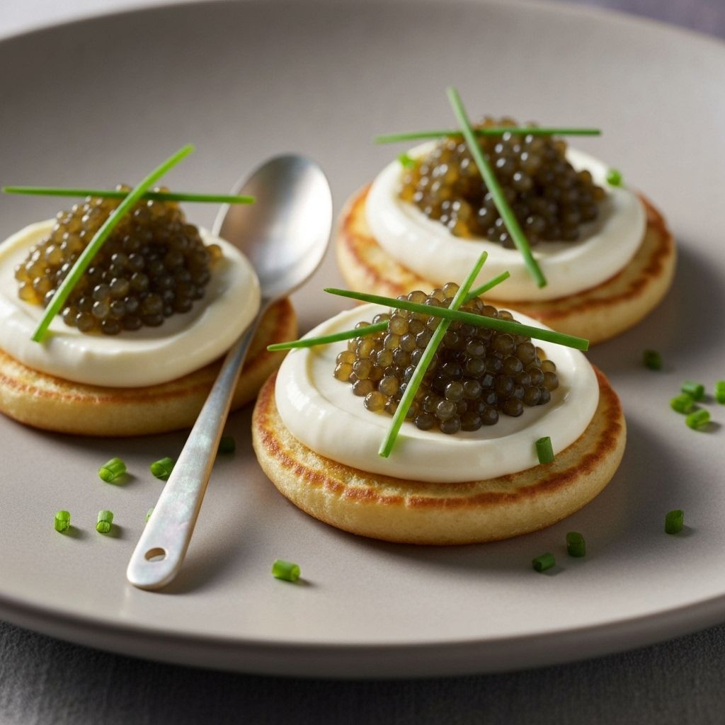 The pinnacle of luxury - 50 grams of rare Beluga Imperiale caviar served traditionally with warm blinis, crème fraîche, and finely chopped chives. Paired with a glass of vintage Champagne.