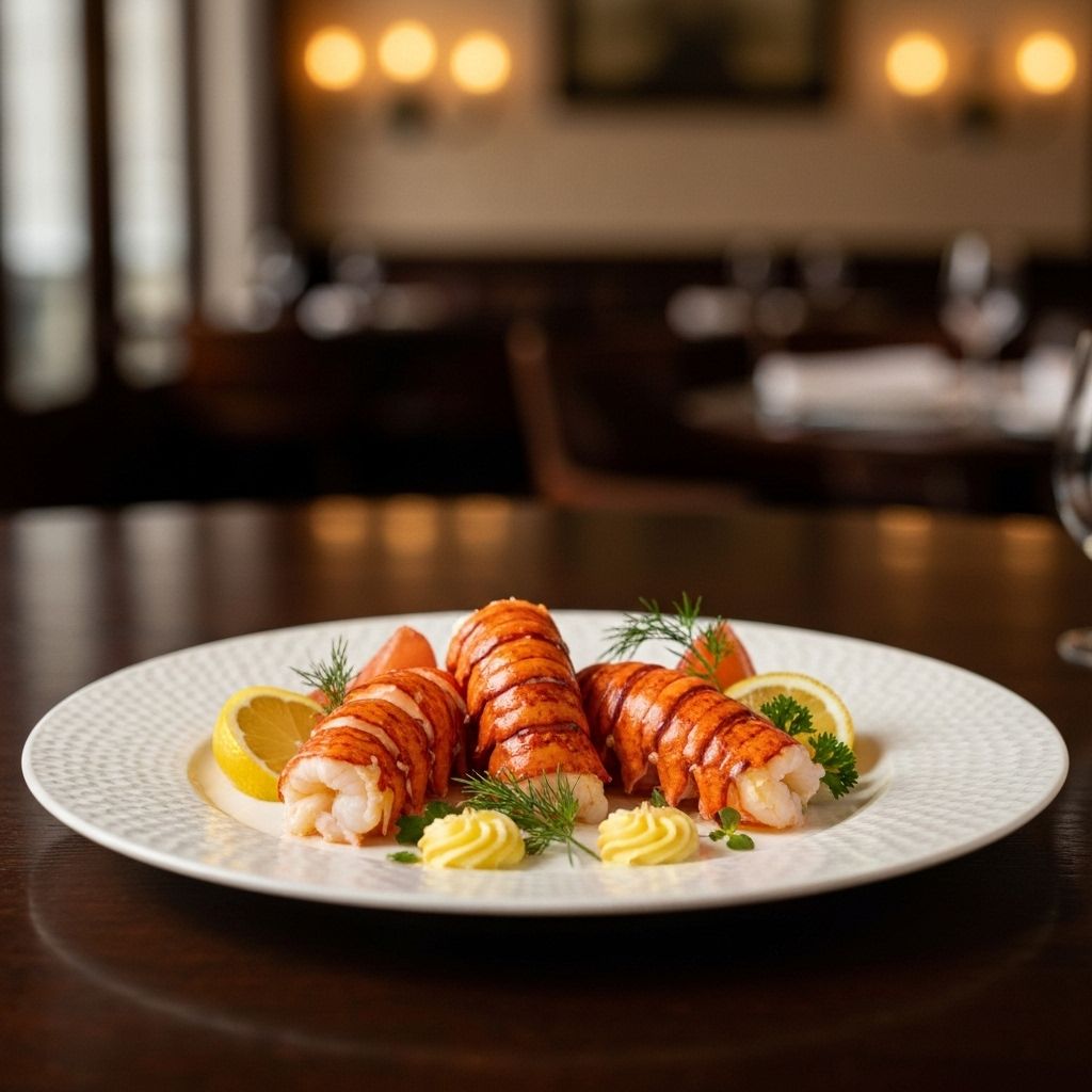 Magnificent whole Brittany blue lobster, prized for its sweet, delicate meat and stunning blue shell. Simply prepared with drawn butter, fresh lemon, and aromatic herbs to showcase its natural excellence.